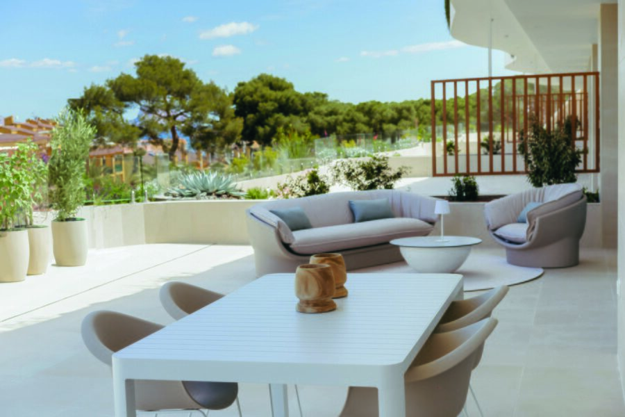 Les extérieurs de ces logements ont été conçus pour offrir un espace de détente et de plaisir en plein air. Toutes les propriétés disposent de terrasses, idéales pour profiter du climat méditerranéen et des vues imprenables sur la mer. De plus, certaines typologies incluent des jardins privés, offrant un oasis personnel pour les amoureux de la nature. Les penthouses disposent d’un solarium, un espace parfait pour bronzer en toute intimité. L’intégration de pergolas dans certaines zones extérieures ajoute une touche d’élégance et de fonctionnalité, permettant de profiter de ces espaces tout au long de l’année.