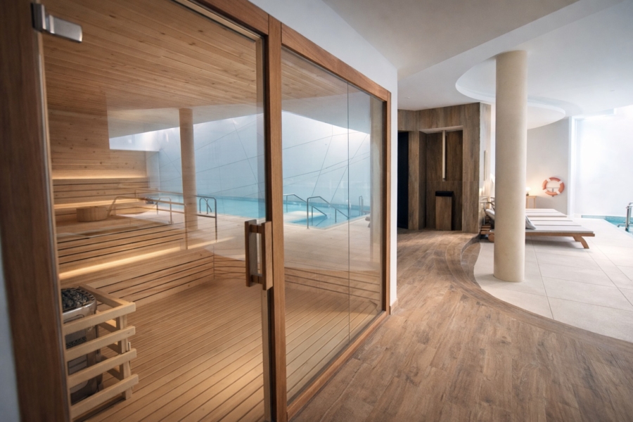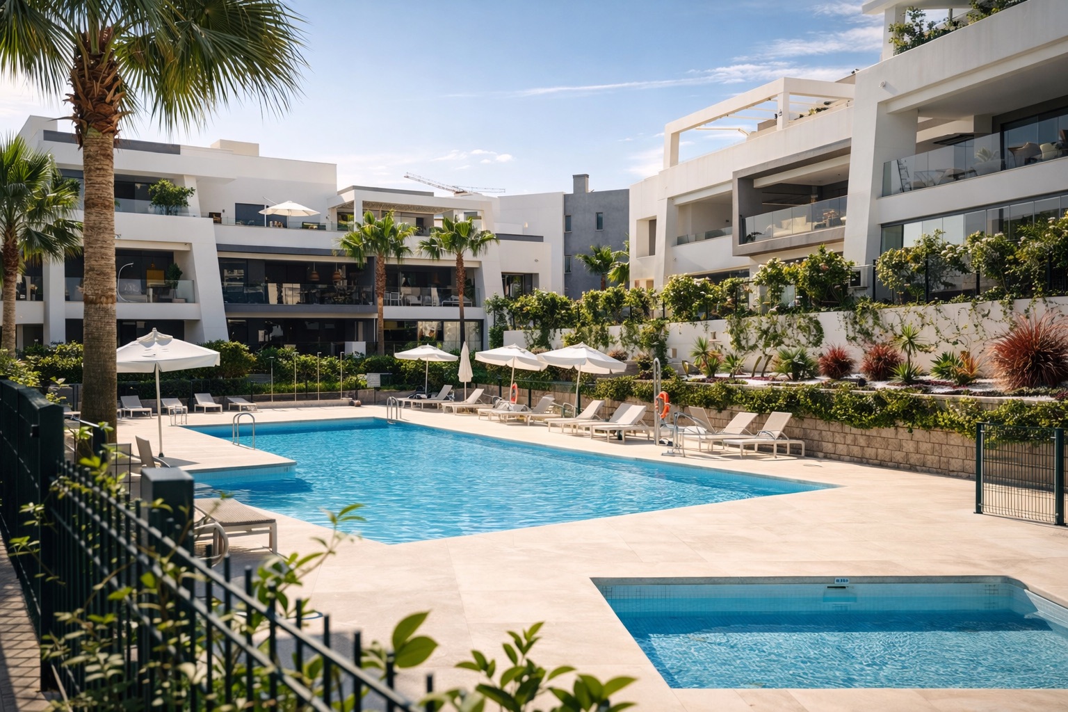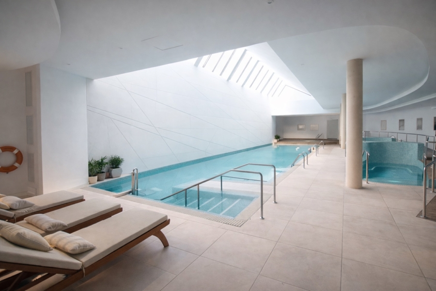 Le complexe résidentiel est une véritable oasis : piscines élégantes, jardins impeccablement entretenus et une zone de spa complète avec piscine intérieure, sauna et salle de fitness – tout dédié à votre bien-être.