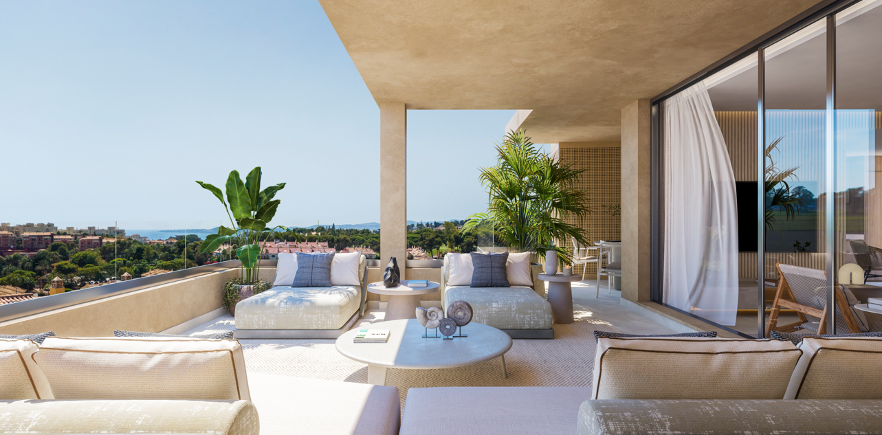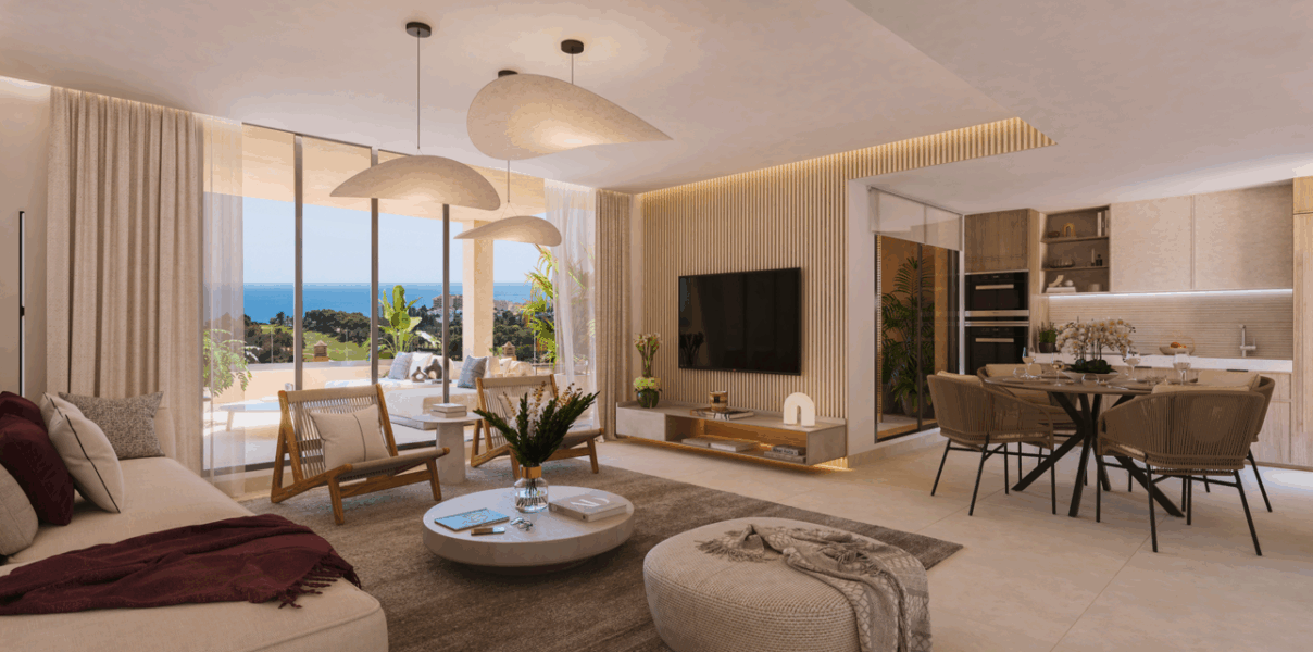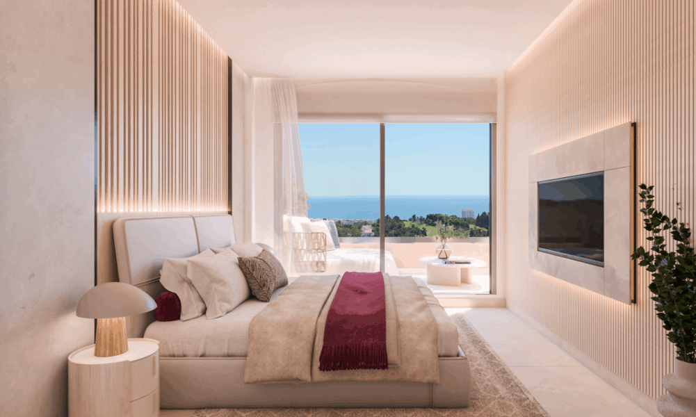 Des appartements au design élégant, où le luxe et la nature s’allient. De grandes fenêtres laissent entrer la lumière naturelle dans chaque pièce, tandis que des espaces ouverts mènent à des terrasses spectaculaires avec des vues infinies sur le golf de Torrequebrada et la Méditerranée.