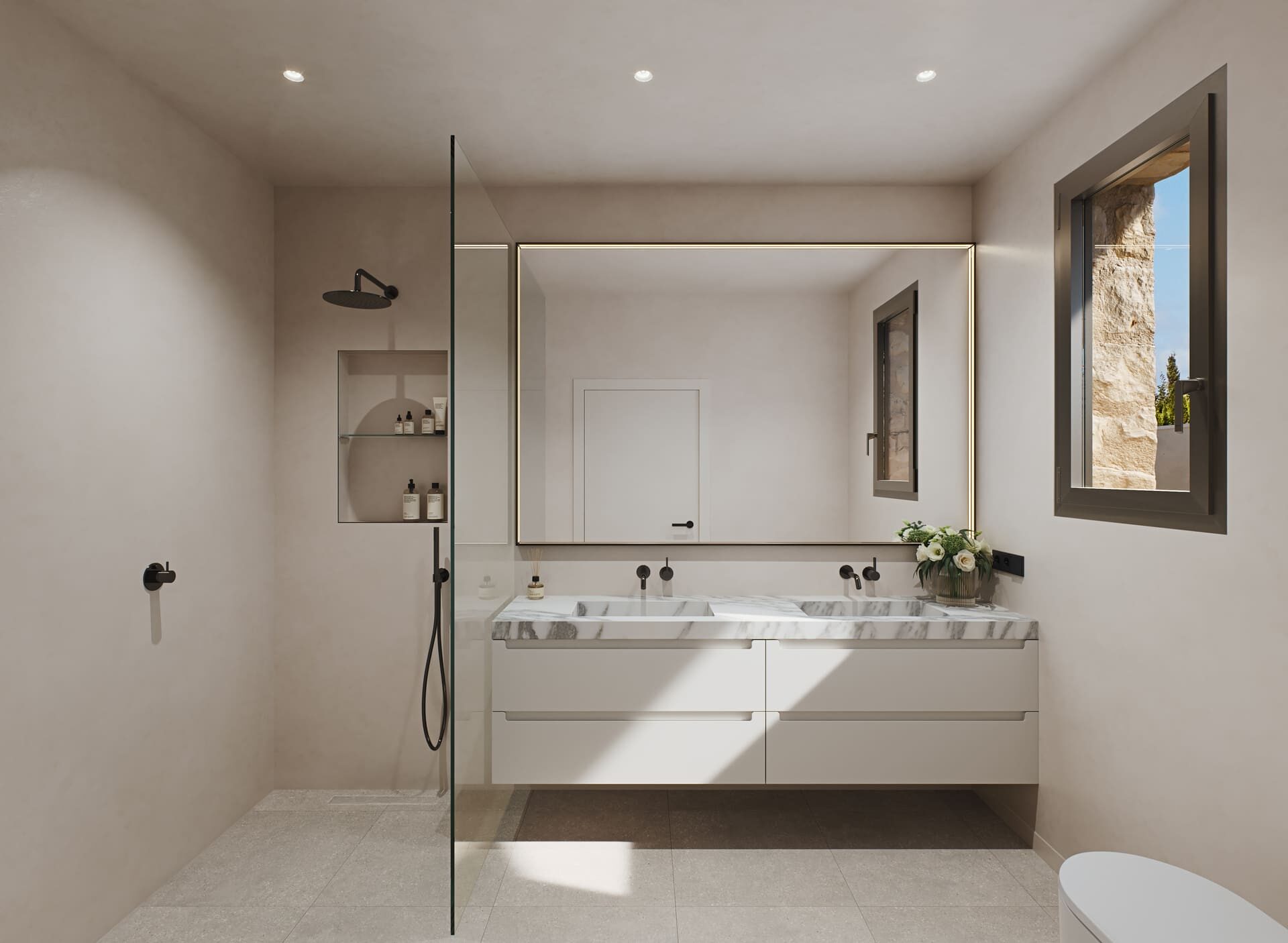 L’intérieur de la villa est soigneusement conçu pour offrir confort et fonctionnalité. Avec trois chambres et deux salles de bains, la distribution est parfaite pour les familles ou pour recevoir des invités. Les chambres disposent de placards intégrés, offrant un espace de rangement généreux. La cuisine est équipée d’appareils modernes, facilitant le quotidien. Le sol en grès cérame ajoute une touche d’élégance et est facile à entretenir. La villa est également équipée de la climatisation, garantissant une ambiance agréable tout au long de l’année. Les volets électriques et l’interphone vidéo ajoutent un niveau supplémentaire de confort et de sécurité.