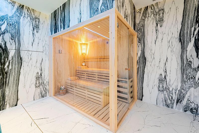 L’intérieur de la villa est équipé de caractéristiques de luxe garantissant un confort maximal. Les sols en marbre ajoutent une touche d’élégance, tandis que le chauffage par le sol assure une température agréable toute l’année. La villa est entièrement meublée et équipée d’appareils haut de gamme, facilitant un déménagement sans tracas. Les volets électriques et le système domotique offrent un confort et une sécurité supplémentaires. De plus, la climatisation assure un environnement frais et confortable pendant les mois les plus chauds. Les placards intégrés dans les chambres offrent un espace de rangement généreux.