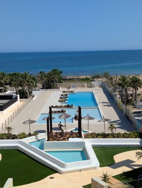 Les extérieurs de cette résidence sont conçus pour offrir une atmosphère de tranquillité et de plaisir. Les espaces verts fournissent un cadre idéal pour se promener ou se détendre en plein air. De plus, les résidents peuvent profiter d’une piscine communautaire, parfaite pour se rafraîchir pendant les chaudes journées d’été. L’emplacement en première ligne de mer offre non seulement des vues spectaculaires, mais aussi un accès direct à la plage, permettant de profiter de la mer à tout moment.