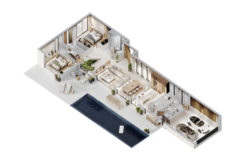Élégantes villas de 5 chambres à Bel Air, chacune d’entre elles ayant une taille et une disposition différentes, soigneusement conçues pour offrir un maximum d’intimité, de confort et de sécurité, garantissant une expérience de vie exceptionnelle.