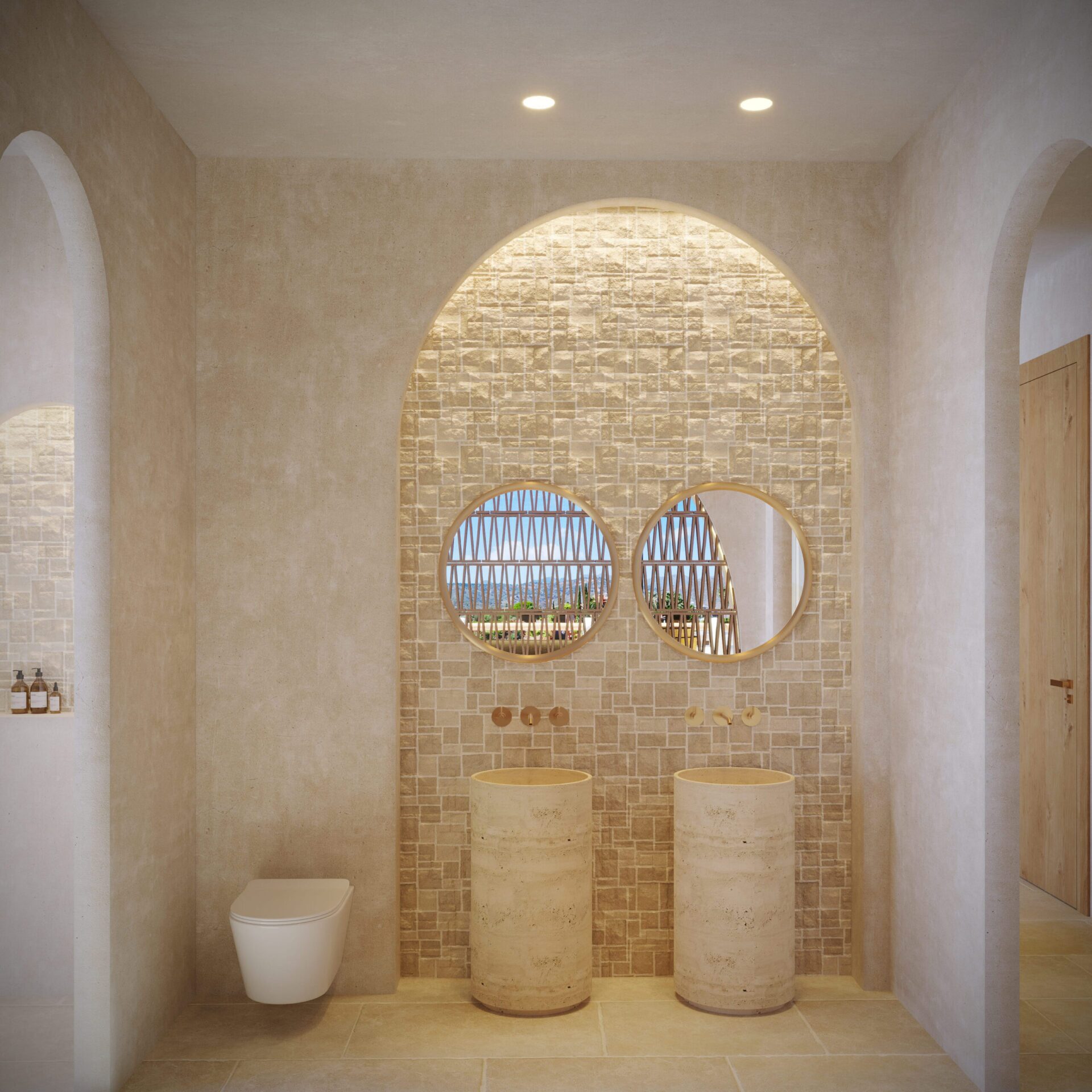 L’intérieur de la villa est conçu avec un accent sur le confort et la modernité. Les sols en microciment apportent une touche contemporaine et sont faciles à entretenir, tandis que les volets électriques offrent confort et sécurité. La villa est équipée d’appareils modernes, garantissant que tous les besoins quotidiens sont couverts efficacement. Le système de climatisation assure un environnement frais pendant les mois d’été, tandis que le chauffage par le sol procure chaleur et confort en hiver. La distribution comprend un garage, ce qui ajoute un niveau supplémentaire de confort et de sécurité pour les véhicules.