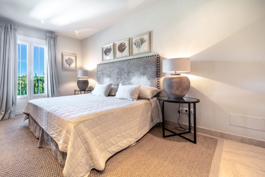 Découvrez un élégant penthouse situé dans l’enclave de Puente Romano II, bénéficiant d’une exposition calme vers l’ouest et d’une vue sur les jardins tropicaux. Le salon et la salle à manger ouverts donnent sur une terrasse couverte, idéale pour se détendre et recevoir. La cuisine est dotée de finitions de haute qualité et la décoration intérieure utilise des tons neutres pour plus d’élégance.