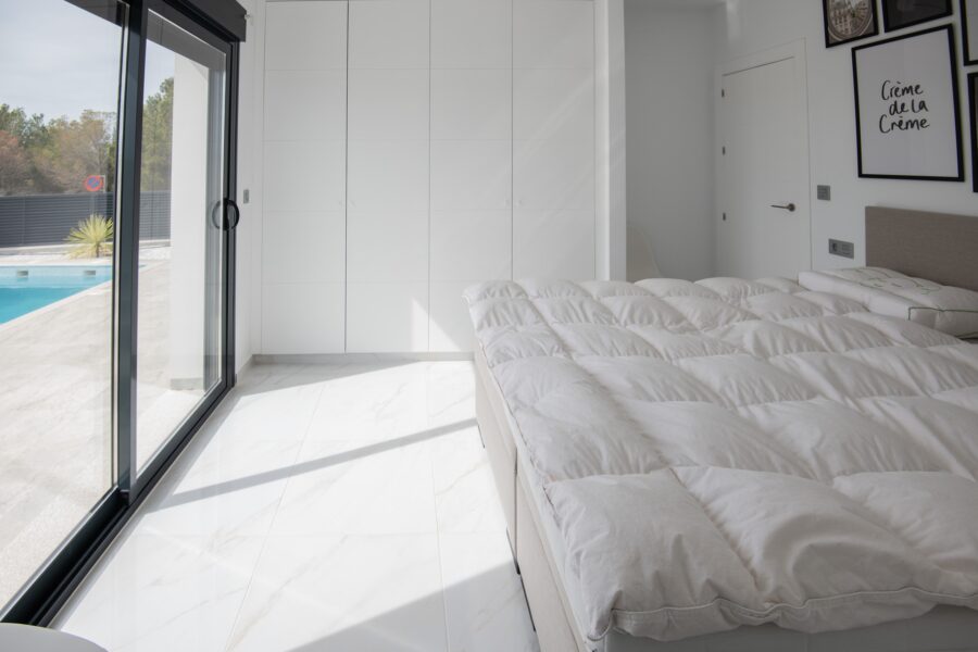 Les maisons disposent d’un design extérieur comprenant un jardin privé, idéal pour profiter du climat méditerranéen. De plus, chaque propriété dispose d’une terrasse et d’un solarium, parfaits pour se détendre en plein air ou profiter de réunions familiales. La présence d’une piscine privée dans chaque maison ajoute une touche de luxe et d’exclusivité, permettant aux résidents de profiter d’une baignade rafraîchissante dans le confort de leur foyer. L’accès à un garage privé assure commodité et sécurité pour le stationnement.