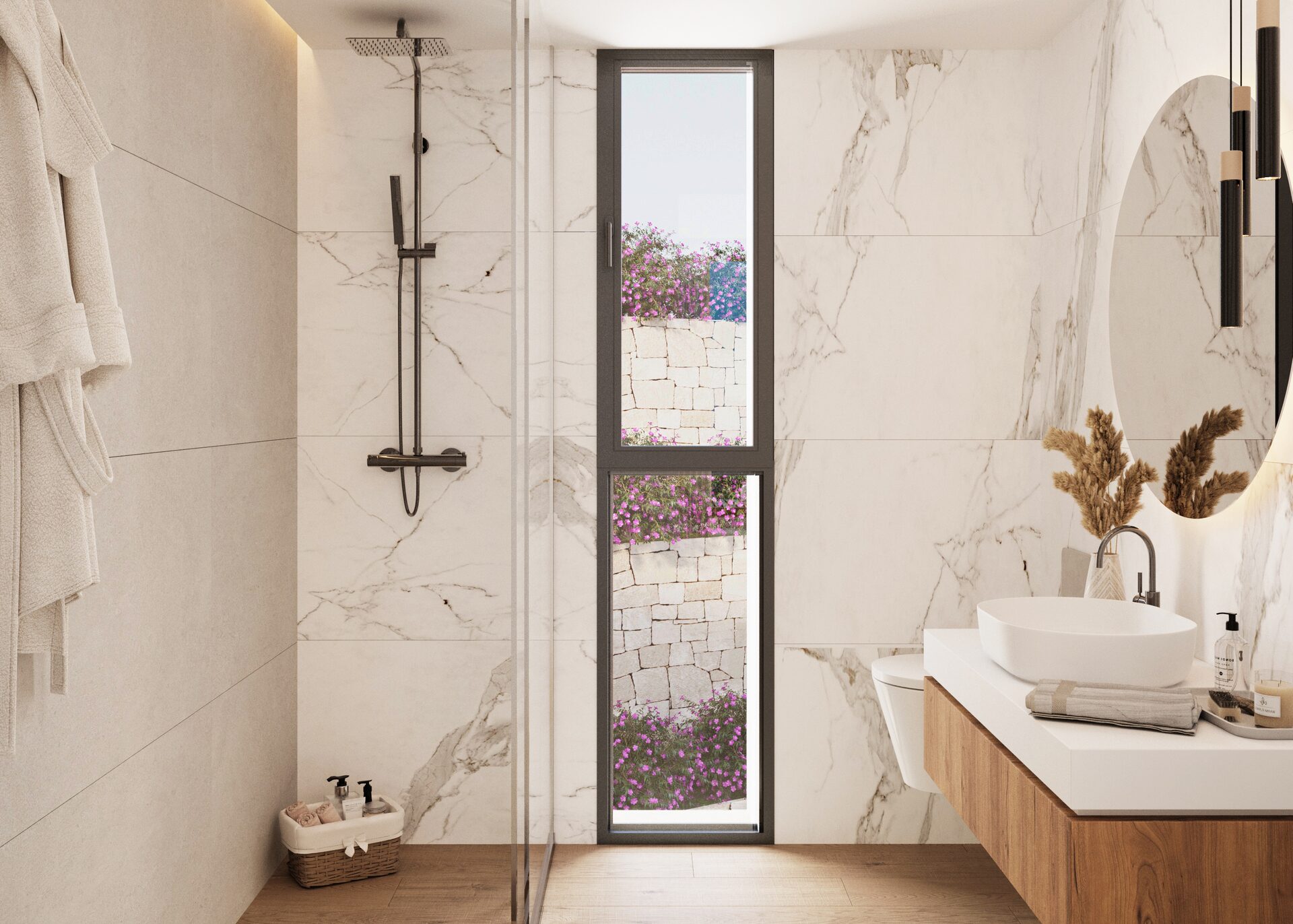 Les maisons disposent de vastes espaces extérieurs comprenant un jardin privé et une terrasse, idéaux pour profiter du climat méditerranéen. De plus, chaque propriété dispose d’un solarium et d’une pergola, parfaits pour se détendre et profiter des vues imprenables sur la mer. La présence d’une piscine privée et d’un jacuzzi ajoute une touche de luxe et de confort, permettant de profiter de moments de loisirs et de détente dans l’intimité de la maison.