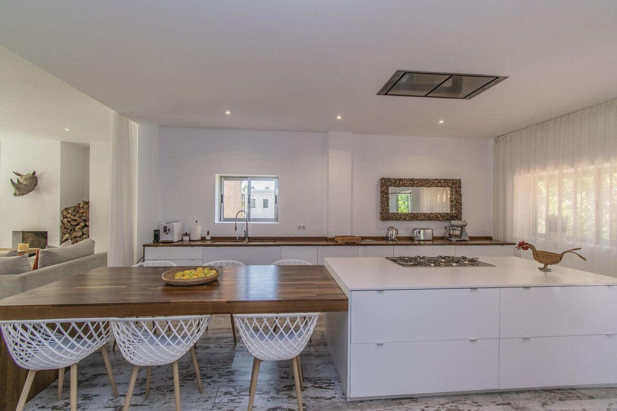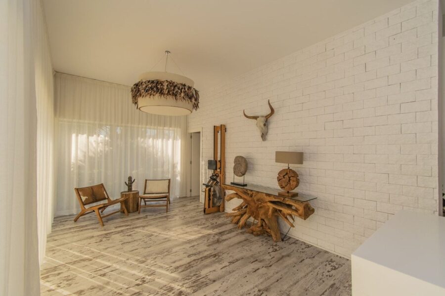 En entrant dans la villa, on est accueilli par un salon spacieux qui s’intègre parfaitement à une salle à manger élégante et à une cuisine ouverte. Cette conception favorise une atmosphère chaleureuse et accueillante, parfaite pour recevoir des invités et profiter de moments tranquilles en famille. La cuisine est équipée d’appareils électroménagers de haute qualité et d’un vaste espace de rangement, répondant ainsi aux besoins de tout amateur de cuisine.