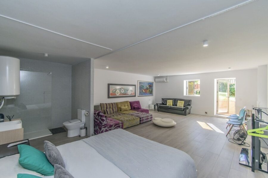 En descendant à l’étage inférieur, les résidents potentiels trouveront un studio polyvalent qui sert de quatrième chambre avec sa propre salle de bains. Cet espace supplémentaire constitue une solution idéale pour accueillir des invités ou peut être utilisé comme un bureau privé, une salle de loisirs ou un espace de fitness, maximisant ainsi l’utilité et l’attrait de la villa.
