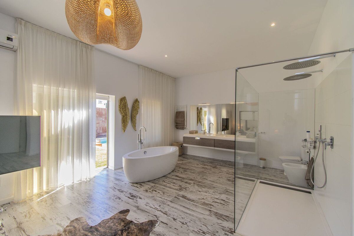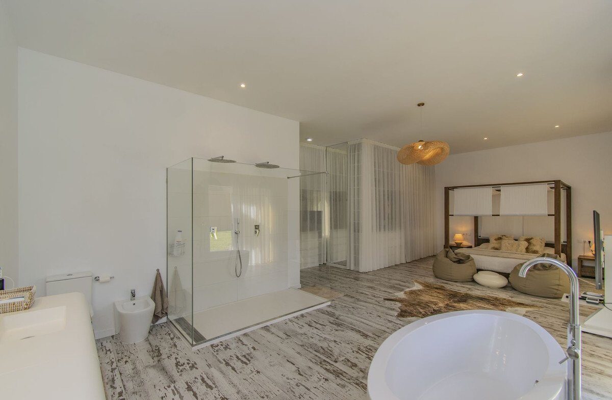 Cette splendide villa a fait l’objet d’importantes rénovations et est principalement distribuée sur un seul étage, offrant une facilité d’accès et de fonctionnalité. Le niveau principal comprend trois chambres à coucher bien aménagées, chacune dotée d’une salle de bains attenante conçue avec des finitions modernes qui améliorent à la fois le confort et l’intimité. En outre, des toilettes pour les visiteurs sont idéalement situées.