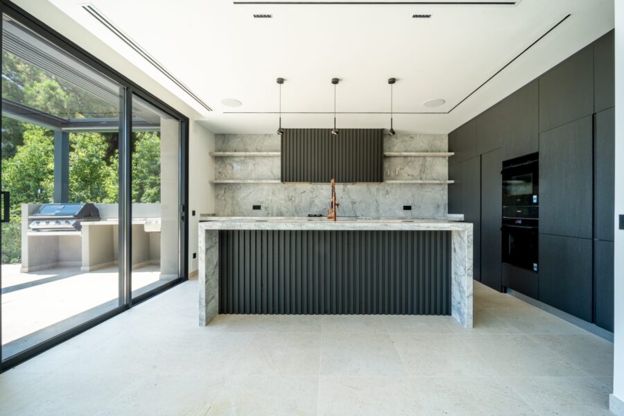 Située dans le prestigieux domaine privé et sécurisé d’Hacienda Las Chapas, à l’est de Marbella, la villa est une résidence neuve implantée sur un terrain de 1 344 m² et offrant 450 m² de surface habitable répartis sur trois niveaux. Elle se distingue par ses intérieurs baignés de lumière, avec un espace de vie ouvert donnant sur une vaste terrasse, une cuisine américaine et une suite d’invités. À l’extérieur, vous profiterez d’une piscine à débordement chauffée et d’une cuisine d’été.