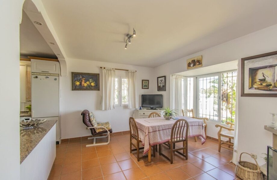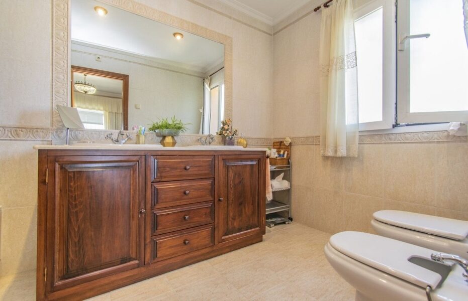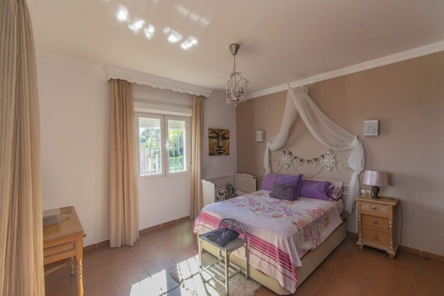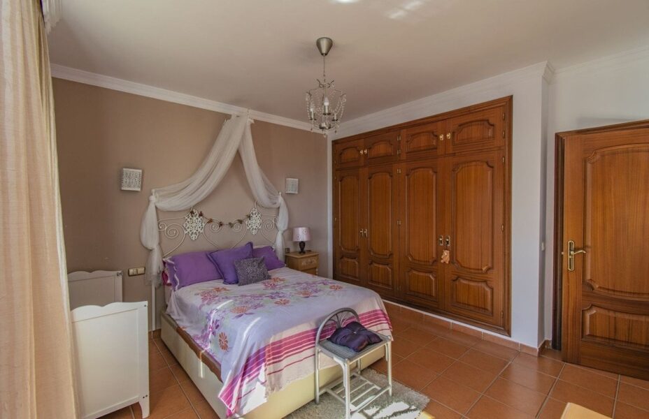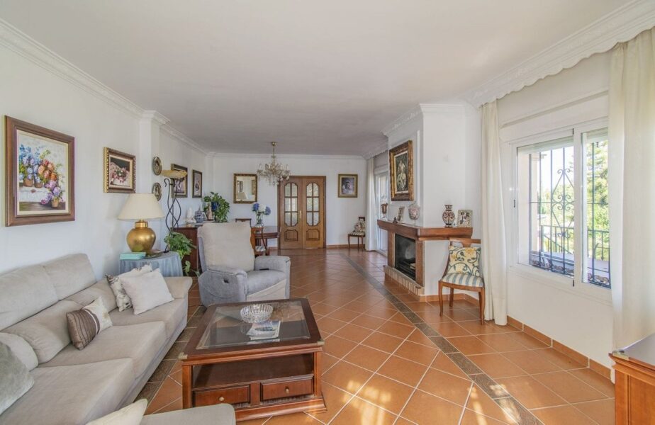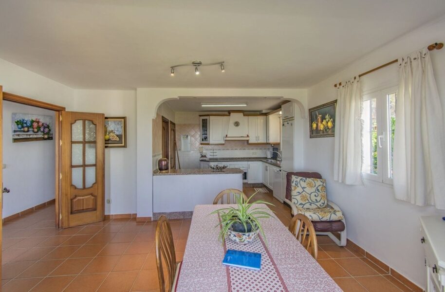 La villa dispose d’un total de cinq chambres et de quatre salles de bains, offrant un espace suffisant pour les familles ou ceux qui aiment recevoir des invités. Le salon est équipé d’une cheminée chaleureuse, parfaite pour se détendre les soirées pendant les mois les plus frais, tandis que la grande cuisine avec salle à manger offre un espace élégant et fonctionnel pour préparer les repas et se divertir.