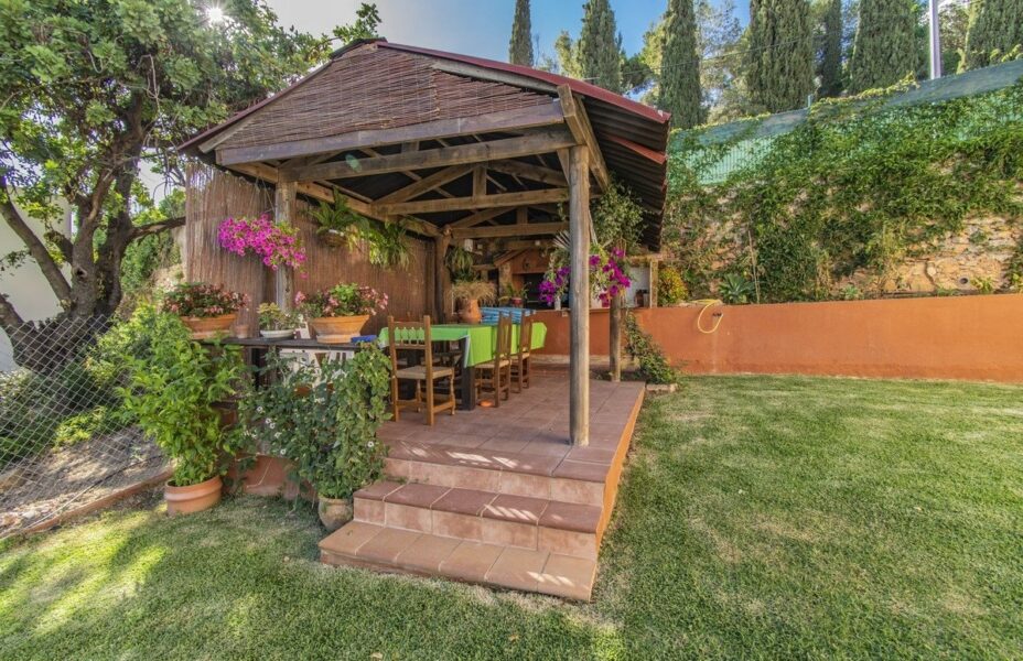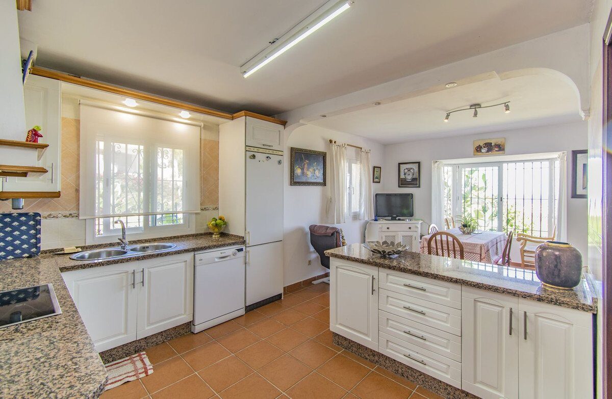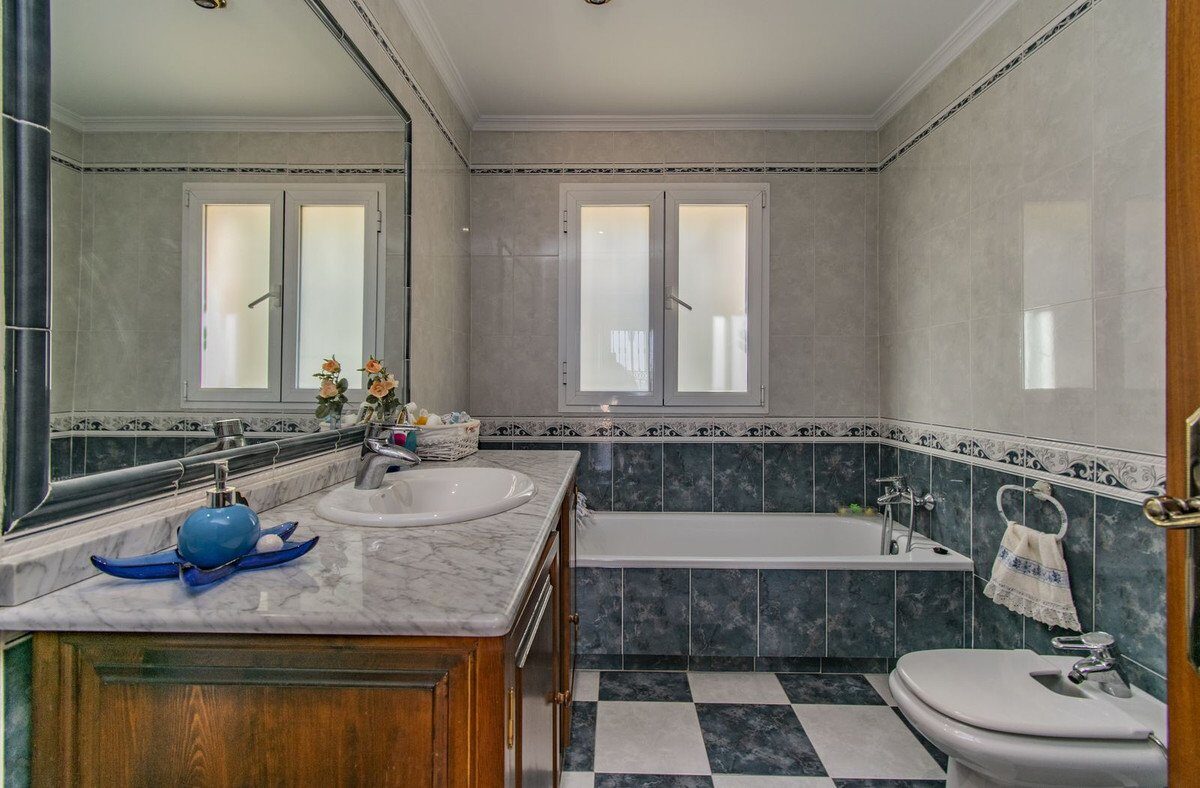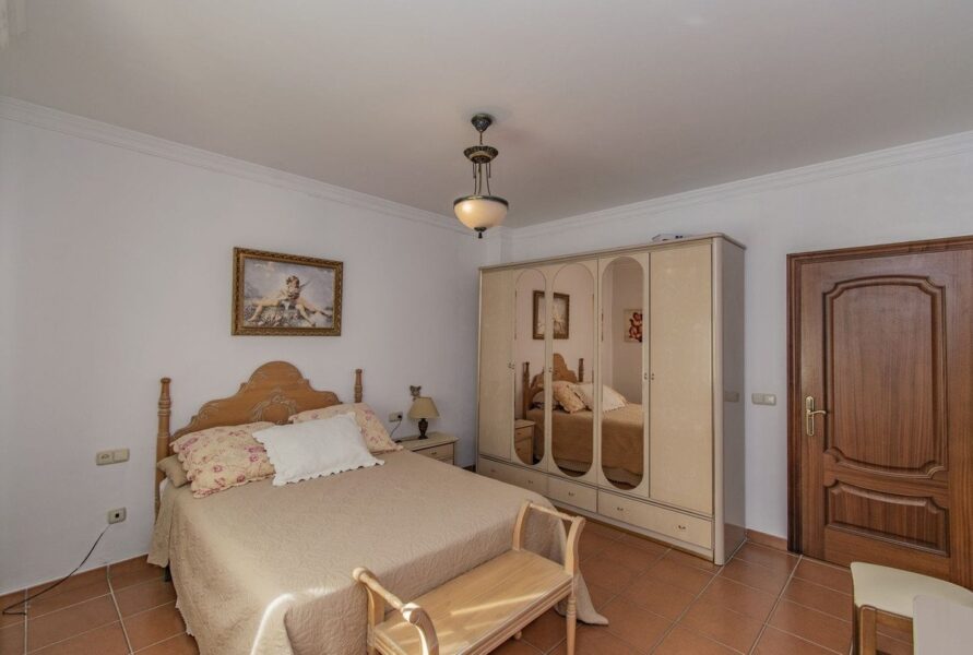 La villa dispose d’un total de cinq chambres et de quatre salles de bains, offrant un espace suffisant pour les familles ou ceux qui aiment recevoir des invités. Le salon est équipé d’une cheminée chaleureuse, parfaite pour se détendre les soirées pendant les mois les plus frais, tandis que la grande cuisine avec salle à manger offre un espace élégant et fonctionnel pour préparer les repas et se divertir.
